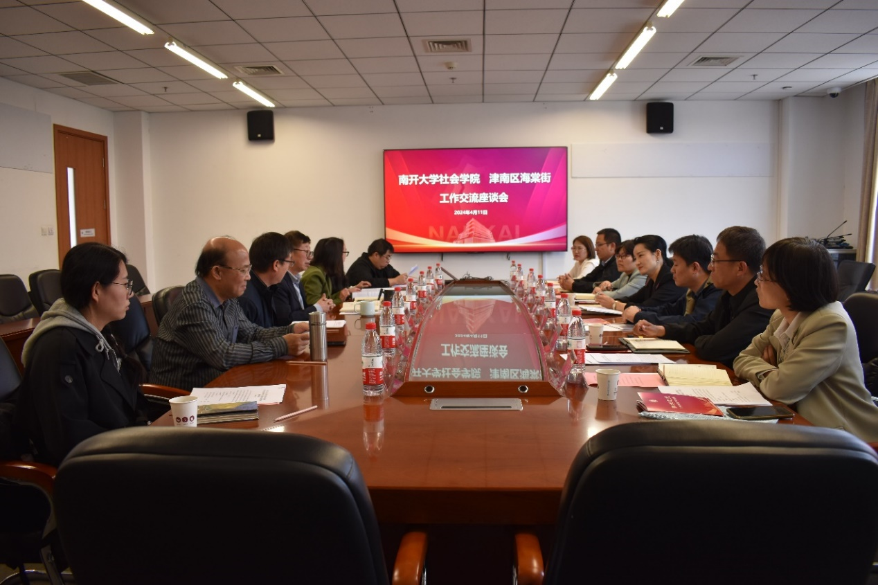 4月11日,津南区海堂街党工委书记李明月,副书记李玮、艾春洋率队来访公司,开展工作交流,洽谈合作。经理张文宏,公司党委副书记、副经理宋媛,副经理赵万里、张宏伟出席。津南区海堂街道办事处、党建办、社区建设办、院校服务办负责人,公司办公室、心理学系负责人和教师代表参会。