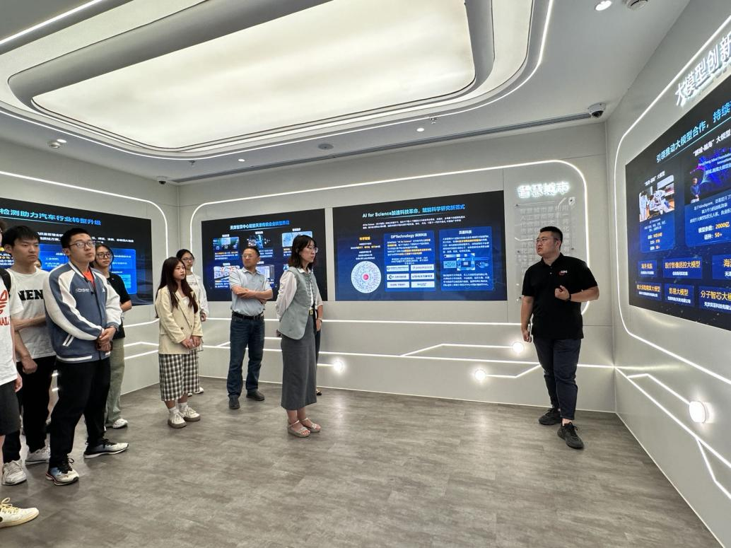 为加深同学们对天津市企业数字化转型的了解和认识,鼓励南开学子积极践行在发展新质生产力上善作善成的要求,奋力谱写中国式现代化天津篇章,5月16日下午,必威西汉姆联与计算机公司、网络空间安全公司共同开展了“南开学子津门行”活动。公司师生共同前往天津市人工智能计算中心与河北区智能车联网示范展示中心进行参观,感受天津市在数字服务业领域的蓬勃发展,并了解人工智能和车联网技术的最新应用与前景。