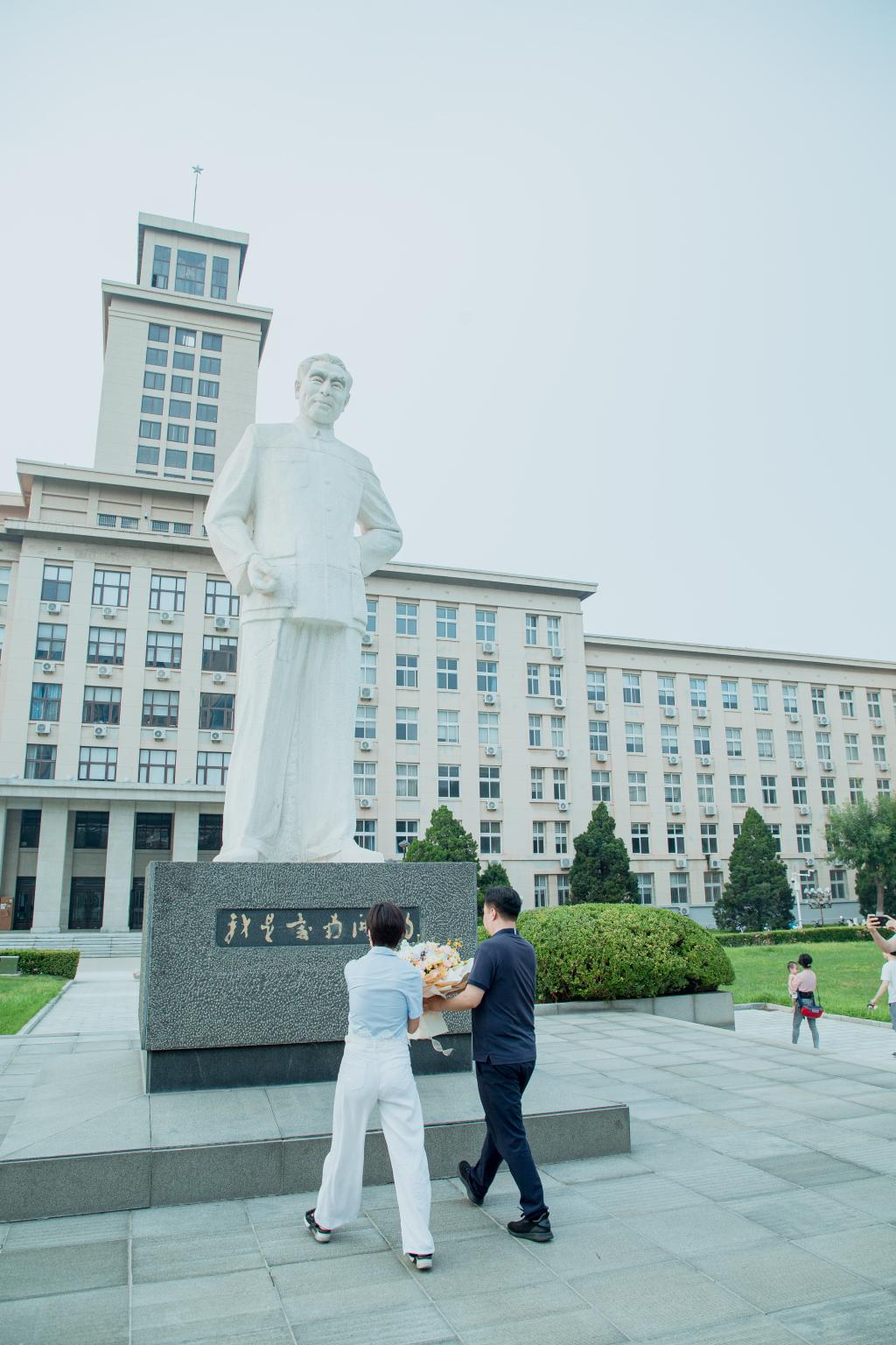 在返校纪念活动尾声,师生共同为总理像献花,深切缅怀周总理的崇高精神、高尚品德、伟大风范,重温周总理为人民谋幸福、为民族谋复兴的人生信条。