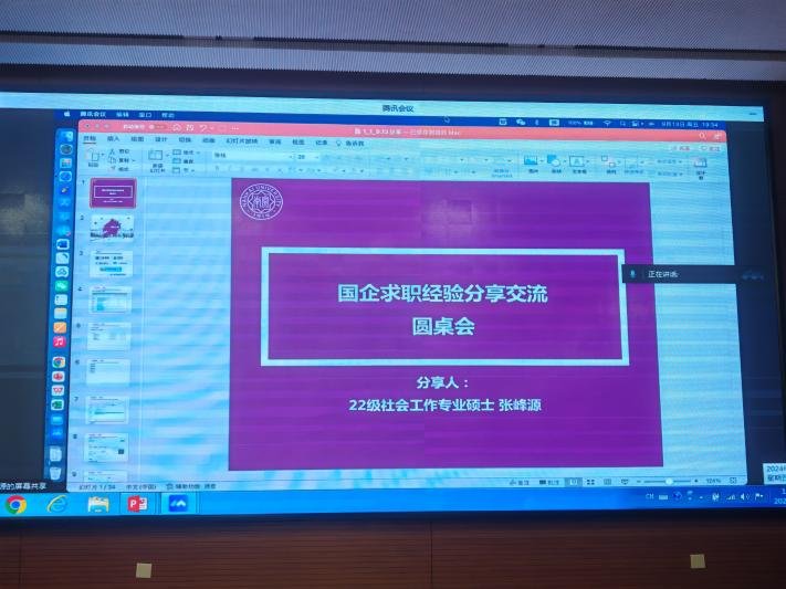 在笔面试过程中,张峰源根据各类面试题目类型详细分享了从无领导面试中脱颖而出的经验技巧,接着根据个人投递经验讲述了对一些国企的感受和筛选目标国企的技巧。最后向大家推荐了牛客网和“星月校招”公众号,用以收集企业信息,与同学互相交流进度。