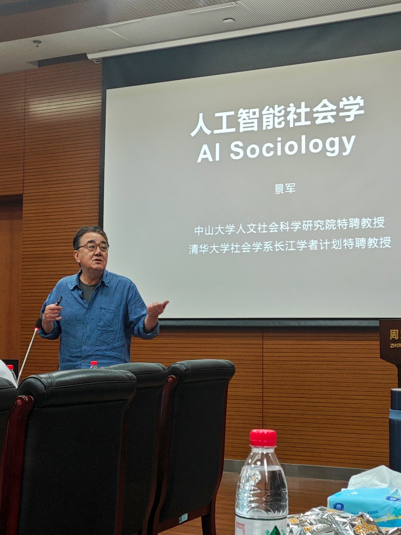 在特邀报告环节,中山大学特聘教授、清华大学社会学系教授景军首先以《人工智能社会学》为题,从个人对GhatGPT等多个大语言模型的使用经验谈起,通过翔实生动的案例介绍了利用人工智能完成的多项研究成果,并阐述了如何利用中医大语言模型研究古代医患关系、传统文化临终关怀思想等前沿议题。