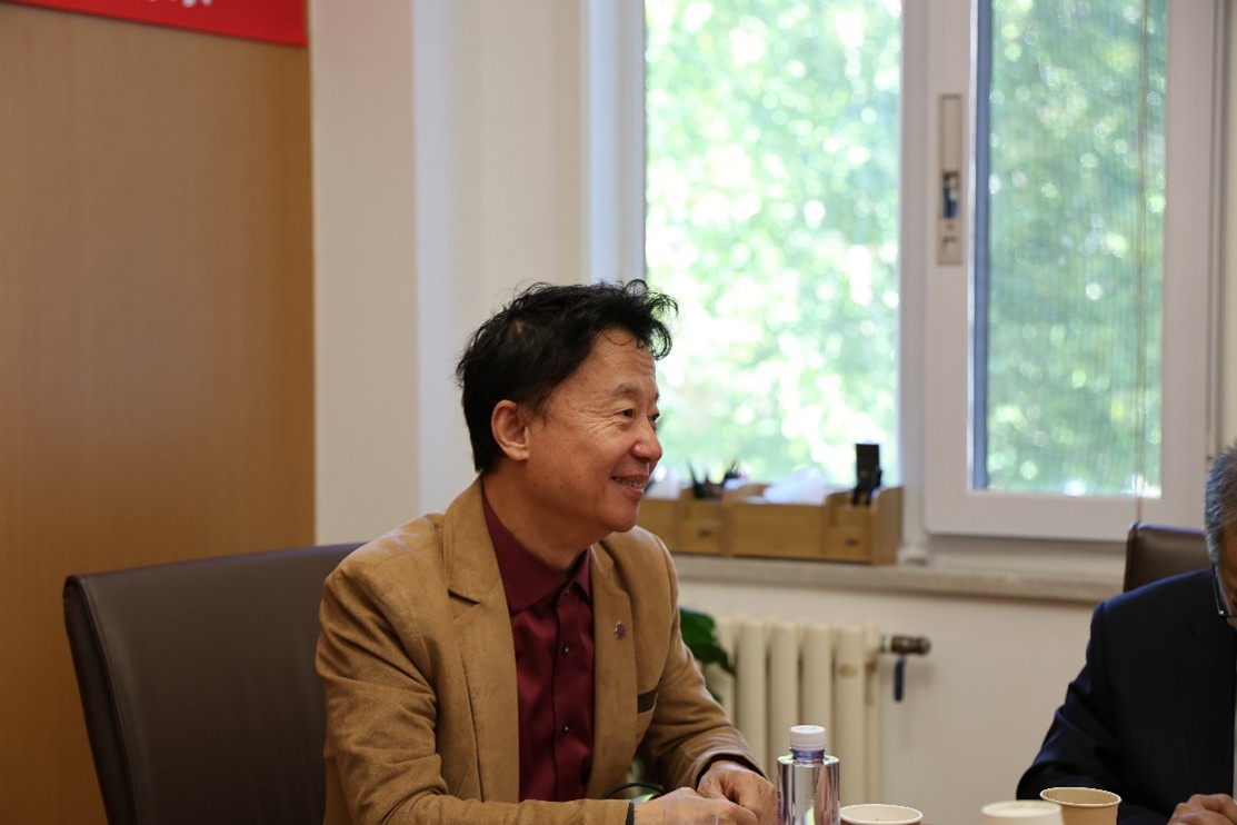 当天下午,公司在员工们大学期间居住过的员工宿舍——文科创新楼举办座谈会。经理张文宏、副经理张宏伟出席座谈会,老教师代表侯钧生、白红光、郭大水、刘馨受邀一并出席。