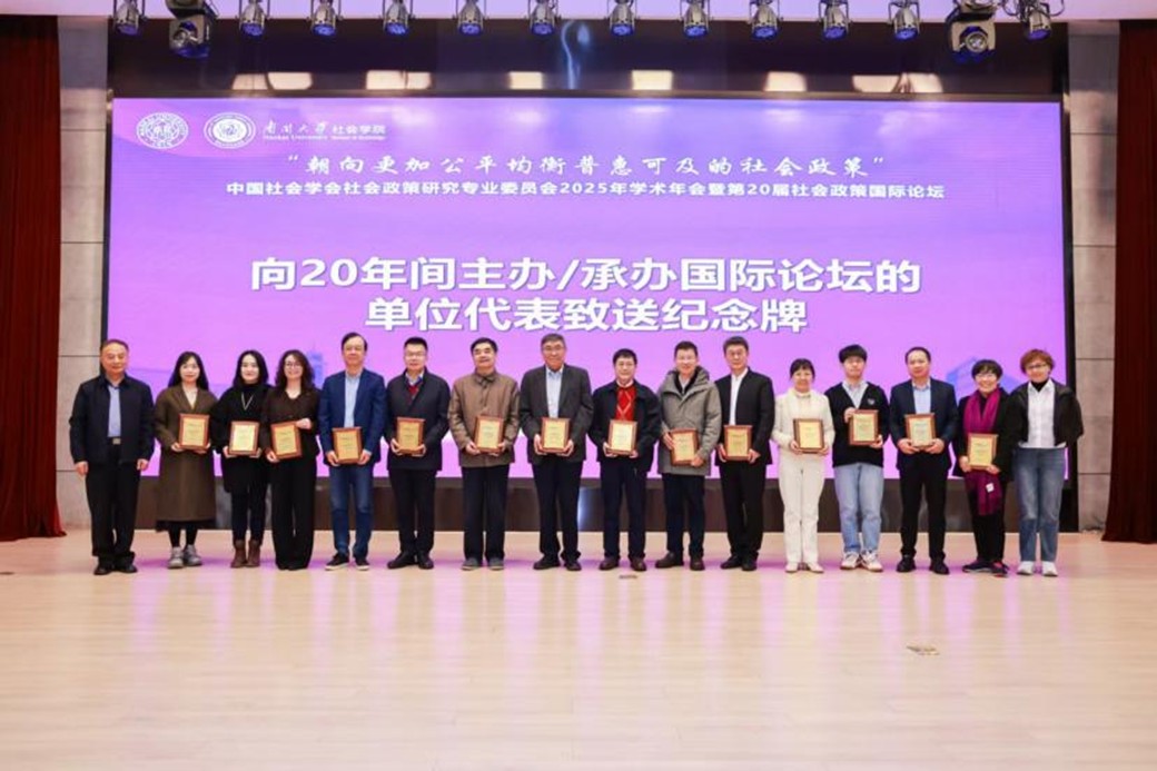 中国社会学会社会政策研究专业委员会原理事长、必威西汉姆联社会建设与管理研究院经理关信平教授,中国社会学会社会政策研究专业委员会原理事长、中国社会科公司杨团研究员和中国人民大学教授、中国社会学会社会政策研究专业委员会秘书长房莉杰为20年间主办/承办社会政策国际论坛的14所高校与研究机构致送纪念牌。复旦大学彭希哲教授和中国社会科公司研究员、中国社会学会社会政策研究专业委员会副主任委员王春光代表主办/承办单位发言,表达了对第20届社会政策国际论坛顺利召开的祝贺,共同展望了社会政策国际论坛的未来发展。纪念牌是对过往各合作单位并肩前行的珍贵记忆封存,也象征着社会政策学术共同体坚实而温暖的共识基石。