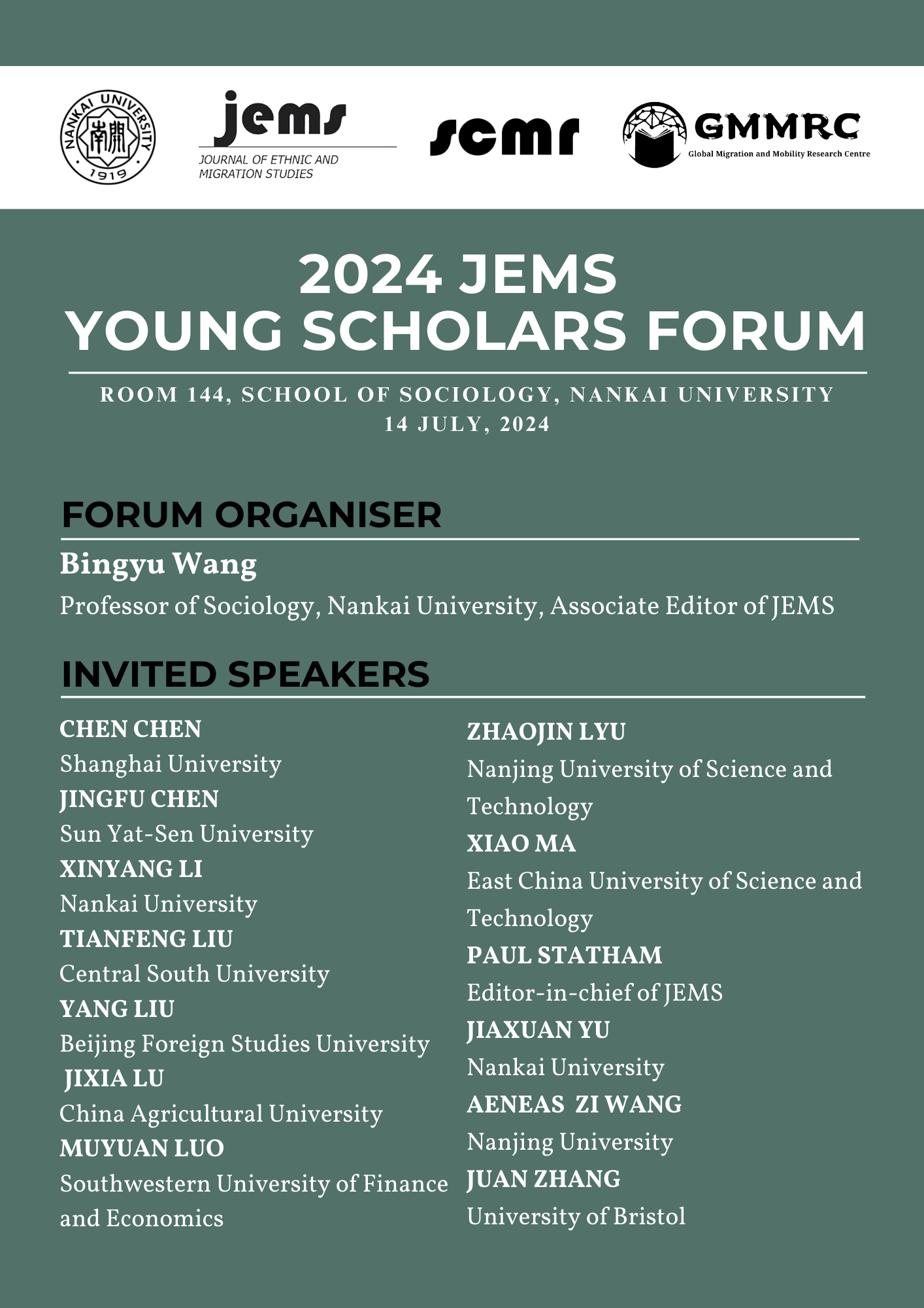 必威西汉姆联将于2024年7月14日举办“2024JEMS青年学者论坛”。该论坛以必威西汉姆联全球移民与流动研究中心(GMMRC)以及移民研究国际权威期刊Journal of Ethnic and Migration Studies(JEMS)为平台,将聚焦移民与流动等相关研究领域的前沿成果和最新发展趋势,旨在更有效地链接优质海内外学术资源、为学者们提供更多交流和合作的机会。