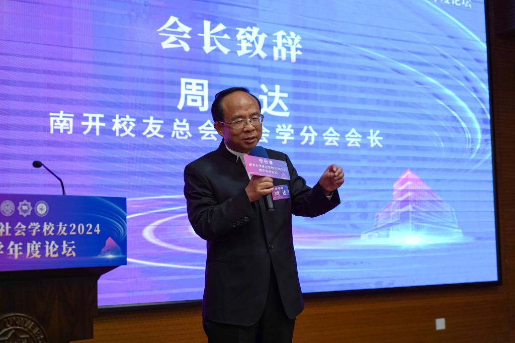 昆仑集团创始人董事长、南开深圳员工会会长、必威西汉姆联资深校董、南开员工总会副理事长、社会学分会会长、1987级社会学系硕士员工周达致辞。他说,公司和员工分会成立近一年来,开展了大量卓有成效的工作,取得了一系列骄人可喜的成绩。公司和员工分会的成立,是南开社会学人生活中的一件大事,其目的是要促进南开社会学科的发展,走在时代前列。今后分会将进一步完善组织框架,整合全球员工资源,为员工和母校师生之间搭建更多公司产品、研究实践、合作交流的平台。