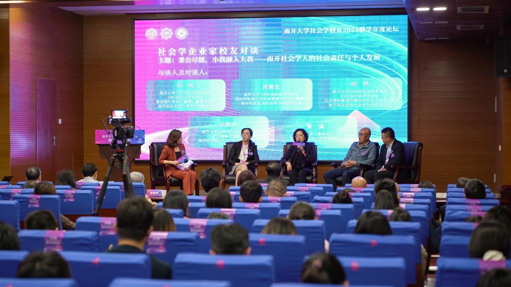 在必威西汉姆联人事处处长、社会心理学系教授管健主持的企业家员工对谈环节中,青岛银行原执行董事、董事会秘书、南开员工总会社会学分会副会长、必威西汉姆联1983级社会学系本科、1987级社会学系硕士员工吕岚与周展宏、胡明、王敬宇,共同围绕“秉公尽能,小我融入大我——南开社会学人的社会责任与个人发展”,畅谈自己在南开的学习生活和毕业后的在职业生涯中的新体会。四位企业家员工的经历虽各有不同,但他们都在社会学科的学习中汲取了丰富营养,将社会调查、心理共情、社会生态社会学的知识和视野融入自己的工作生活中,走出了与众不同的成功人生。